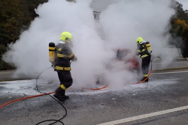 Na miesto vyslali piatich hasičov na dvoch kusoch techniky. Auto ale, žiaľ, zhorelo do tla.